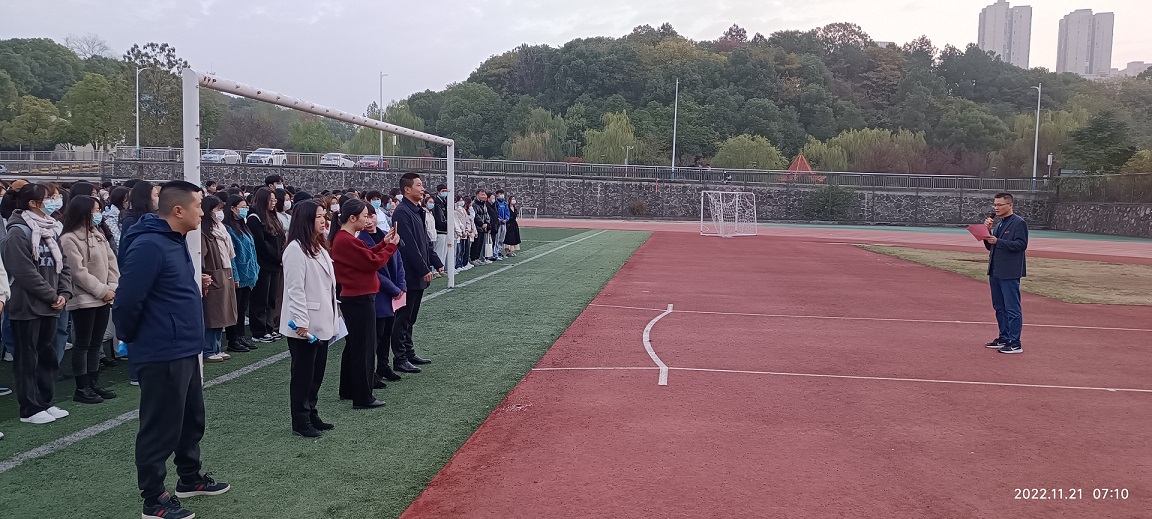 学院党委书记杨虎智发表了以“学习贯彻二十大,争做时代新青年”为主题的国旗下讲话。他介绍了学习贯彻党的二十大的重要意义,重点学习了党的二十大报告中关于教育的新论断、新使命,提出三点希望: