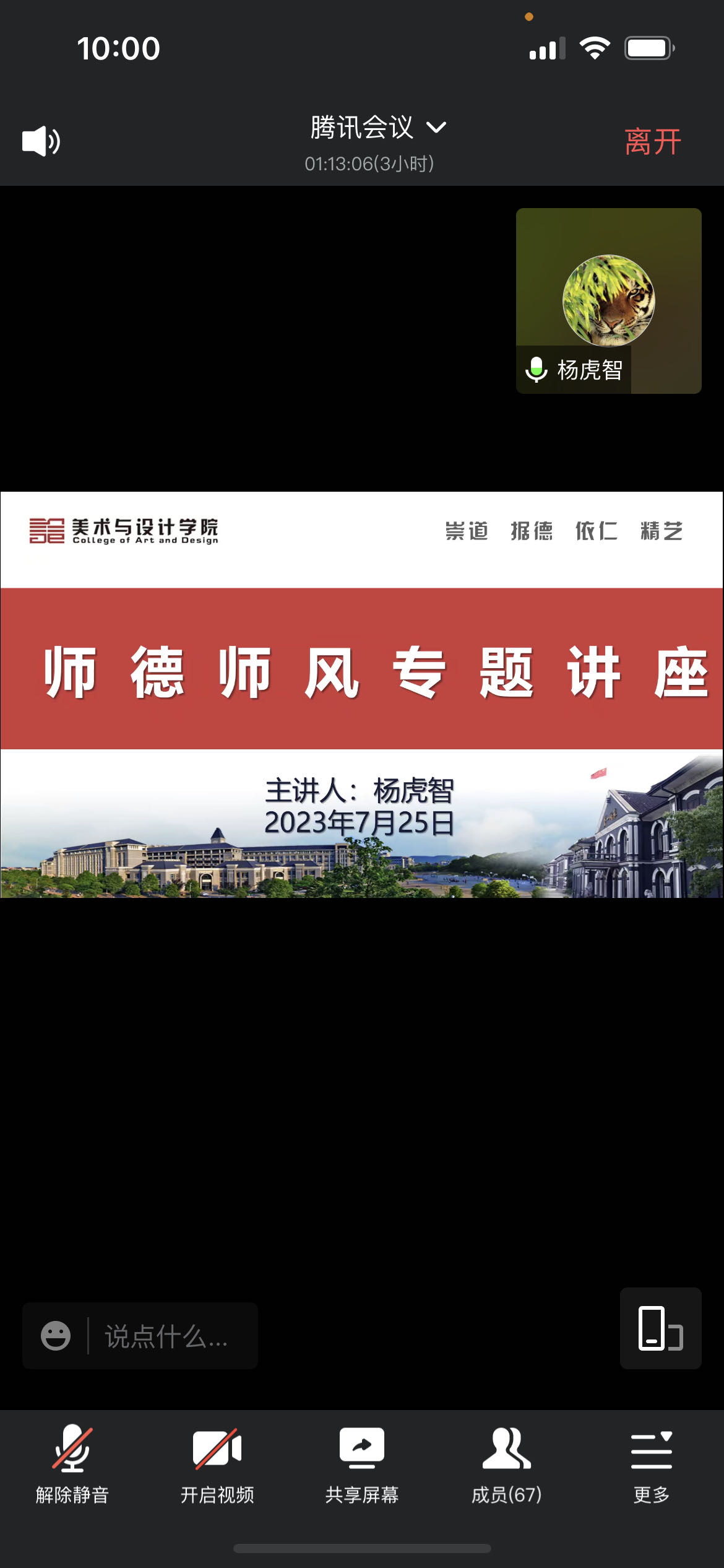 2023年7月25日上午,国产内射剪辑精品福利师德师风专题党课在腾讯会议开讲,主讲人为院党委书记杨虎智,美设院全体教师参加。