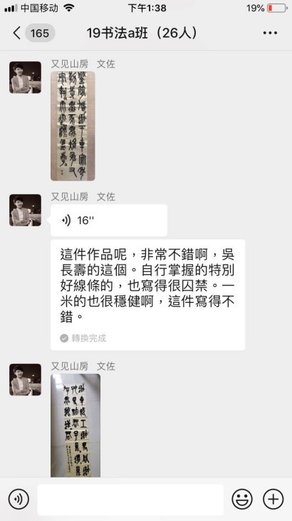 鉴于微信平台易于操作与交流,文老师要求学生及时提交课程作业,并随时进行详尽的点评。