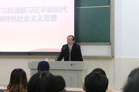 简单而又严肃的开班典礼之后,第一堂党课开始,校党委副书记刘志敏教授为入党积极分子带来主题为“深入学习和理解习近平新时代中国特色社会主义思想”的讲座。刘志敏书记在党课中分析了十九大报告清晰的内在逻辑:新论断(新时代)、新课题、新理论、新实践,阐述了习近平新时代中国特色社会主义思想产生的时代背景和重大意义,重点对习近平新时代中国特色社会主义思想进行解读,并和大家分享了学习习近平新时代中国特色社会主义思想的感悟。他指出,党始终重视思想引领力的加强,重视思想理论在治国理政中的作用,不断推进理论创新,用党的创新理论武装头脑,统一思想,指导实践,推进工作,抵御一切错误思潮的干扰。他指出,习近平新时代中国特色社会主义思想开辟了马克思主义新境界,开辟了治国理政新境界,开辟了管党治党新境界,具有重大而深远的政治意义、理论意义、实践意义和世界意义,“八个明确”有着逻辑严密的科学体系,“十四个坚持”是实现中华民族伟大复兴中国梦的“路线图”和“方法论”
