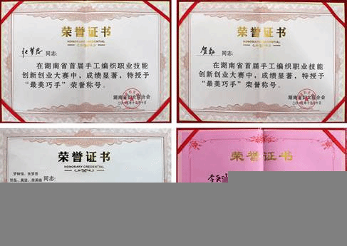 本次大赛吸引了全省14个市州的非物质文化遗产传承人、民间手工艺大师、30余所高校师生等500余人参赛,近200件作品入围决赛。我院范迎春、李英晓、易鸽老师指导的两组学生作品全部获奖,其中,蒙钟强、黄坚、贺磊、张梦思、李英晓的团体作品《麻藤·物语》获编织类高校组二等奖,刘倩、岑月琴的作品《出巡》获纸艺类高校组三等奖。李英晓老师被共青团湖南省委授予“湖南省青年岗位能手”称号,贺磊、张梦思、刘倩、岑月琴等四位学生被湖南省妇联授予“最美巧手”荣誉称号。