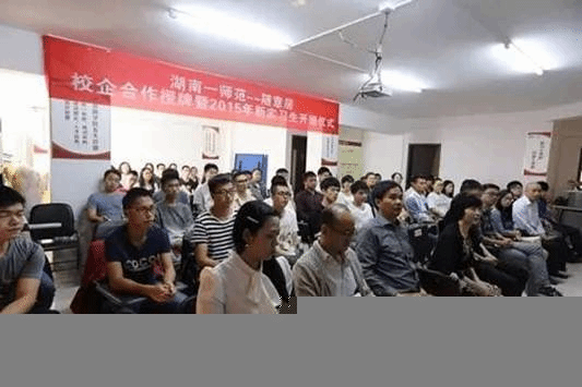 彭小堃董事长代表公司致辞。他说,湖南第一师范学院历史悠久,文化底蕴深厚,也是毛主席的母校,学校的百年基业中蕴藏着自强不息、艰苦奋斗的人文精神。随意居非常重视与一师的合作,将以此次共同创建省级人才培养示范基地为契机,围绕校企合作创新设计平台、强化国际交流两大方面为广大设计类学生提供更专业的指导与服务。希望实习生不仅能收获成长和阅历,也能在企业平台上早日实现自我价值。
