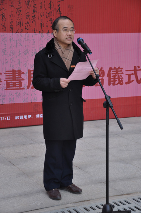 仪式上,彭小奇书记发表了热情洋溢的致辞。他首先代表学校党委、行政和全体师生,对王德水先生的深情厚意表示衷心的感谢和诚挚的敬意!彭小奇指出,王德水先生从小接受毛泽东思想教育,深受毛主席书法作品的熏染,为毛主席诗词的恢宏气势和艺术魅力所折服,并成为影响他一生艺术追求的精神源泉,并乐意受聘为主席母校的客座教授。今天,王先生怀着对主席母校的一片深情,特地精心创作了71幅书画作品。这些作品既体现了王先生高超的书画技艺,也反映了一师“千年学府,百年师范”的文化传承。彭小奇强调,王先生将此次展出的全部作品无偿捐赠给我校,是向我校110周年校庆献上的一份厚礼,表达了他对我校伟大校友毛泽东同志的无限敬仰之情。