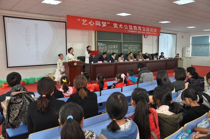 今天,我院与虹桥小学联合举行“艺心同梦”美术公益教育交流活动。校领导阳柏苏、刘志敏,高新区教育局、省女画家协会、省青年美术家协会、慧灵社区机构、虹桥小学及我校教务处、我院的相关负责人出席活动。