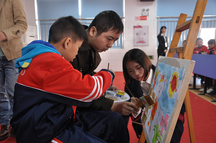 从今年3月开始,我院美术师范生在每周三(或周四)下午为虹桥小学各年级以课外活动的形式进行美术教育,一方面为美术教育师范生提供了实践平台,另一方面,完善了我校和中小学相互衔接的艺术教育发展机制,通过校校联合实现了美术师资交流互补,推进了虹桥小学的美术教育。同时,我院2011级美术学师范生一直坚持为公益美术教育服务,三年来,他们每月都会来到慧灵社区为智障人士进行公益教育活动,用艺术点亮他们的希望,帮助他们开启和外界交流的通道,最大限度发掘孩子的潜能,提升他们为社会出力的才智,产生了很好的社会效益。