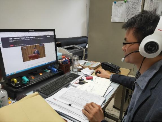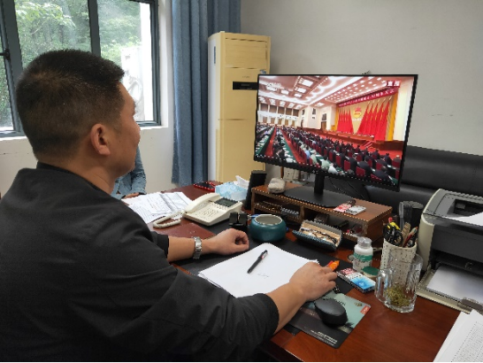 我院在鹤鸣楼南栋203会议室、111报告厅设立两个集中观看点。同时,我院党委副书记(主持工作)杨虎智、副书记戴建宇带领师生在办公室、教室等地积极观看。