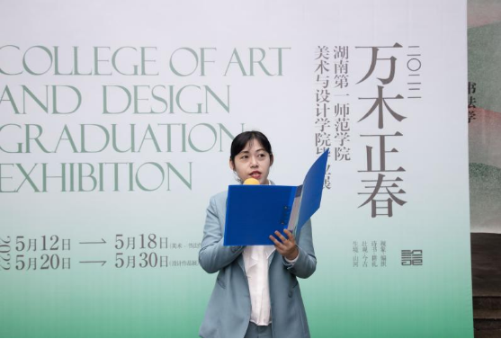 5月12日,湖南第一师范学院国产内射剪辑精品福利美术学系与书法学系2022届毕业生以“万木正春”为主题的毕业作品展在东方红校区鹤鸣楼南栋一楼展厅开幕。校党委委员、副校长周发明教授,校党委委员、副校长彭晓辉教授,教务处处长胡春光教授,国产内射剪辑精品福利院领导以及美术学系、书法学系师生参加开幕式,开幕式由张娴院长主持。
