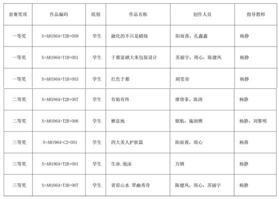 我院视觉传达设计专业学子在此次比赛中表现出色,荣获国家一等奖1项,省级一等奖励3项,二等奖2项,三等奖3项的好成绩,杨静老师荣获优秀指导教师奖。通过这次大赛展示了湖南第一师范学院国产内射剪辑精品福利在创新人才培养方面取得的优异成果,也充分展现出我校学子的精神风貌与使命担当。