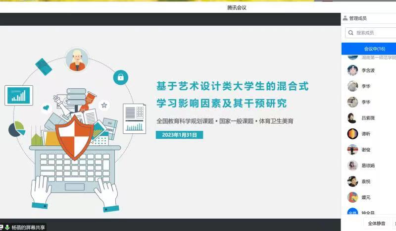 2023年2月3日邀请了多项国家级项目获得者、国社科艺术学评审专家——湖南工业大学校长助理朱和平教授作为指导专家,朱教授首先对国家社会科学基金项目的过程及申报书存在的一般问题、基金申请书撰写的几个关键细节进行了详尽的介绍,随后对我院教师的申报书从申报选题、文献综述、研究方案设计、申报书的撰写等方面在线上进行一一指导。朱教授特别强调课题选题依据不宜太长,申报书内容要注重逻辑性,研究思路需要用图表的形式展现;此外要注意文献综述要反映近三年的最新研究成果。