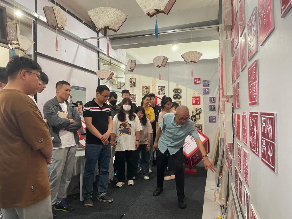 油画方向同学蔡子琪认为进入到篆刻展示区,同学们的兴趣突然被调动起来。阳老师展示的校本课程,深深吸引了大家;尤其是进入美术教室时,同学们被课桌上一本本学生的作品集所震撼,很难想象这是在一个乡村学校可以做出来的。这不仅需要学生的努力和老师的坚持,更需要学校领导的支持,阳老师能把地方文化充分融入到美术课堂中,让学生们对美术产生浓厚的兴趣,这都是同学们将来作为一个美术老师所需要学习和借鉴的。