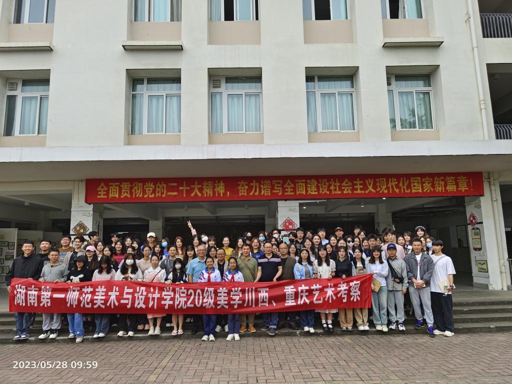 湖南第一师范学院2020级美术学川西、重庆艺术考察走进都江堰市蒲阳中学,考察农村中学美术教育,是我院是贯彻落实“两坚持、两拓展”发展思路的生动体现,充分展示了我校大力推进教师教育教学改革,坚持小学美术学品牌的示范引领作用,积极拓展面向中学美术学师范专业办学的举措。