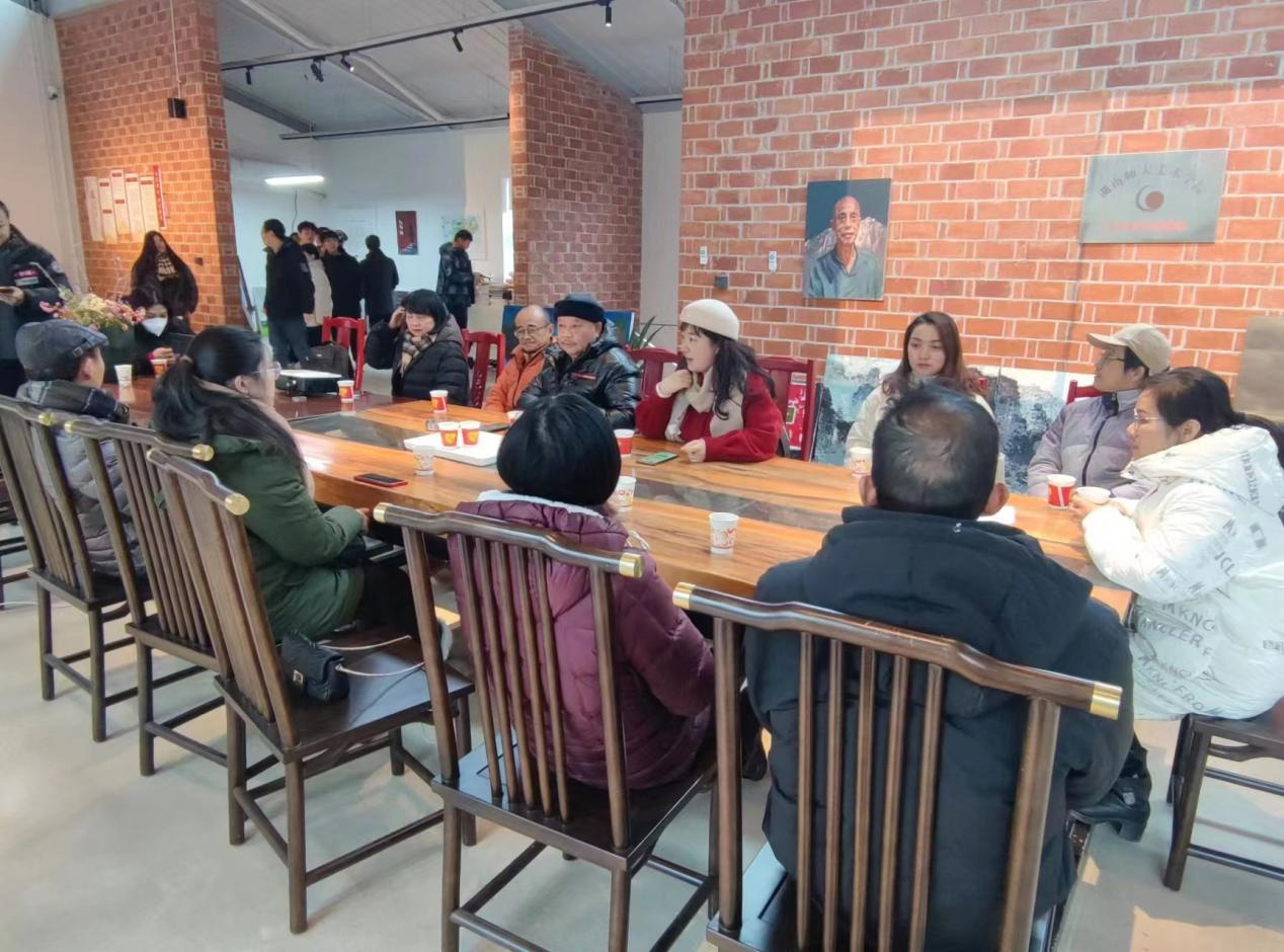 随后,师生一同前往段江华乡村美术馆参观。段江华乡村美术馆旨在打造成一个群众艺术鉴赏的窗口,学生美育教学的基地,畅通文艺下乡的桥梁和提供公用文化服务的平台,是聚焦以美学赋能乡村振兴的成功范例。在美术馆内,美术学系教师与段教授围绕乡村振兴主题创作、如何利用写生素材为创作做基础、第十四届全国美展创作建议和浏阳美育研究四个议题展开了精彩学术研讨,研讨会由孙冰主任主持。在研讨会上,范迎春教授讲到,段教授在美术上的成就有目共睹,又是时代楷模,近期聚焦艺术赋能乡村振兴,带动了双江镇的经济与影响力,探索艺术服务社会等问题。谷炽辉副教授展示了今年七月我院师生“三下乡”乡村振兴文化艺术服务团到浏阳市永和镇中心完全小学,开展暑期“三下乡”社会实践活动的情况,得到段教授和当地小学校长高度赞扬。在座其他老师也针对议题进行了积极发言,与段老师展开探讨。最后,蔡惠萌表示,段江华教授对于我院美术学系的专业建设、学科建设给予了很多指导与帮助,希望后续在第十四届全国美展的准备以及教学、科研、创作和乡村美育等方面得到段教授更多的支持与帮助。
