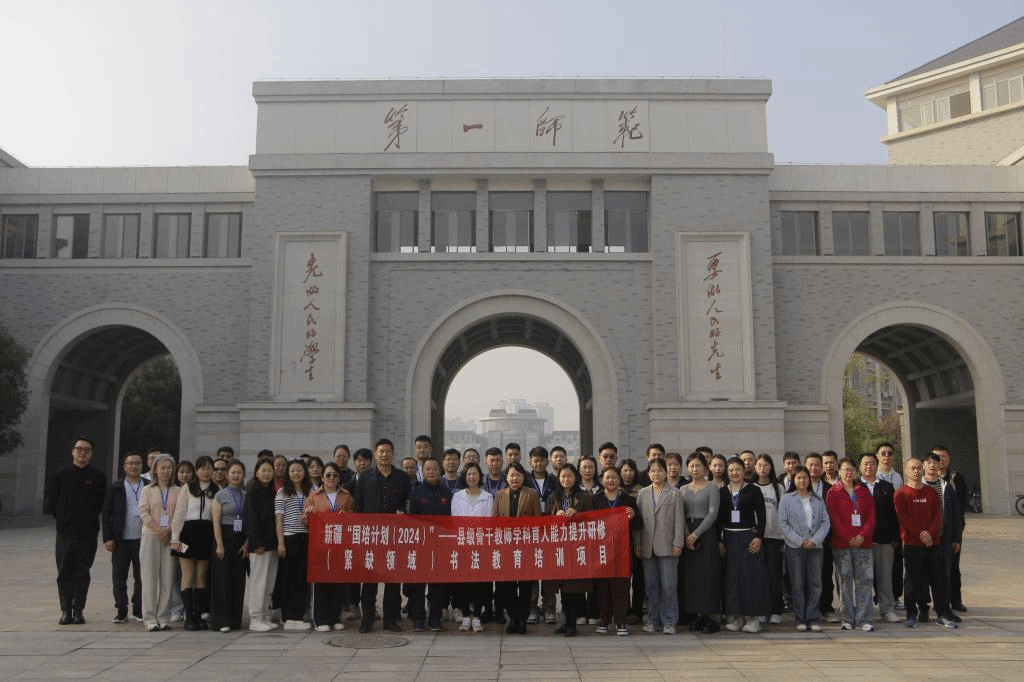 2024年11月13日上午,新疆维吾尔自治区“国培计划(2024)”——县级骨干教师学科育人能力提升研修(紧缺领域)书法教育培训项目开班典礼在湖南第一师范学院鹤鸣南111举行,本项目由湖南第一师范学院国产内射剪辑精品福利承办。国产内射剪辑精品福利党委书记杨虎智、副院长(主持行政工作)首席专家蔡惠萌、现代教育发展学院副院长刘炜、项目管理团队和49位新疆中小学书法教育骨干教师共同出席此次典礼。典礼由国产内射剪辑精品福利书法学系副主任王振凯主持。