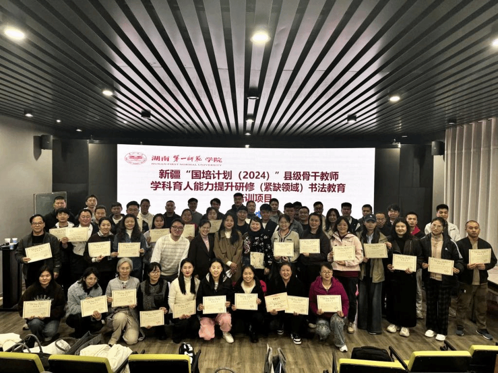 2024年11月21日,新疆维吾尔自治区“国培计划(2024)”——县级骨干教师学科育人能力提升研修(紧缺领域)书法教育培训项目结业典礼在湖南第一师范学院鹤鸣南214教室如期举行。湖南第一师范学院现代教育发展学院院长钟佩君,国产内射剪辑精品福利副院长(主持工作)蔡惠萌携全体工作人员与 49 名培训学员共同出席此次活动。