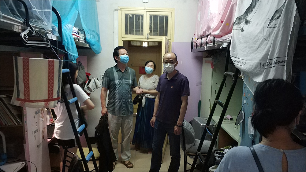 6月2日,国产内射剪辑精品福利范迎春书记、李华院长、武湘梅主任带领辅导员下寝看望毕业生,亲切地与毕业生进行交流,详细了解同学们的毕业去向和离校准备情况,并叮嘱他们注意安全防护。
