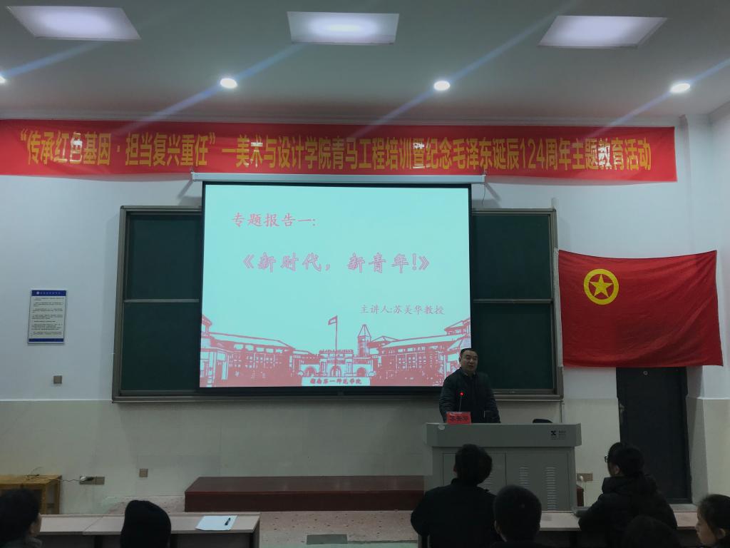 12月11日至15日,我院“传承红色基因,担当复兴重任”青年马克思主义者骨干培训暨纪念毛泽东诞辰124周年主题教育系列活动成功举办。本次活动由我院团总支主办,院党总支书记苏美华、副书记舒克斌特别重视,并分别作了专题讲座。