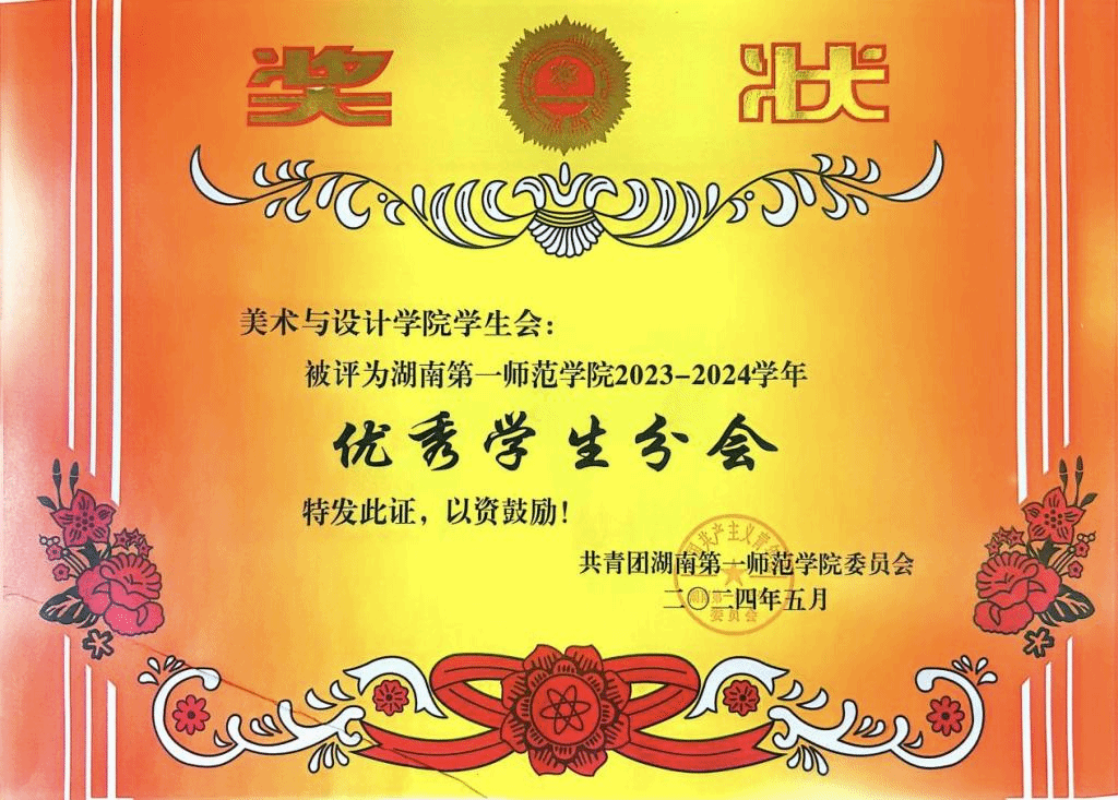 我院学生会荣获湖南第一师范学院2023—2024学年“优秀学生分会”荣誉称号 发布时间:2024-05-15 作者: 浏览次数: 2024年4月,湖南第一师范学院学生会听取“2023-2024学年各学生分会工作报告”,结合学生会实际工作、“我为同学做实事”系列活动开展等综合情况,决定授予我院学生会“优秀学生分会”荣誉称号。 在未来的工作中,我院学生会将继续坚守服务同学的初心,不断开拓创新,为同学们的成长和发展贡献更多的力量。我们将加强自身建设,提升干部队伍素质,以更加专业、高效的服务水平,助力同学们在校园中的成长成才。 我院2023—2024届全体学生干部合影 (一审:武湘梅 二审:刘峰 三审:杨虎智)