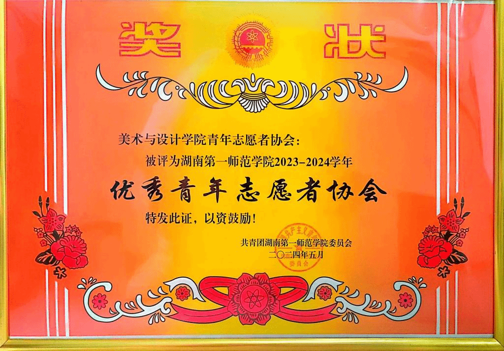2024年4月,湖南第一师范学院青年志愿者总会开展了“2023-2024年度优秀青年志愿者答辩”活动,我院青年志愿者协会在此次答辩中胜出,荣获2023年度湖南第一师范学院“优秀青年志愿者协会”称号。