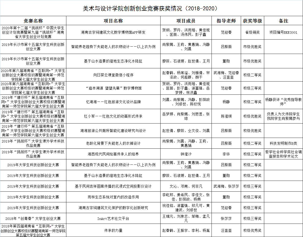 国产内射剪辑精品福利创新创业竞赛获奖情况(2018-2020)