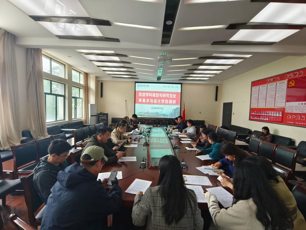 2024年4月10日下午2:30,学科规划与研究生处欧阳章东处长一行来国产内射剪辑精品福利调研学位点申报工作,调研会议在鹤鸣南203会议室举行,国产内射剪辑精品福利党委书记杨虎智主持会议,美设院班子成员、骨干教师、青年教师代表参会。