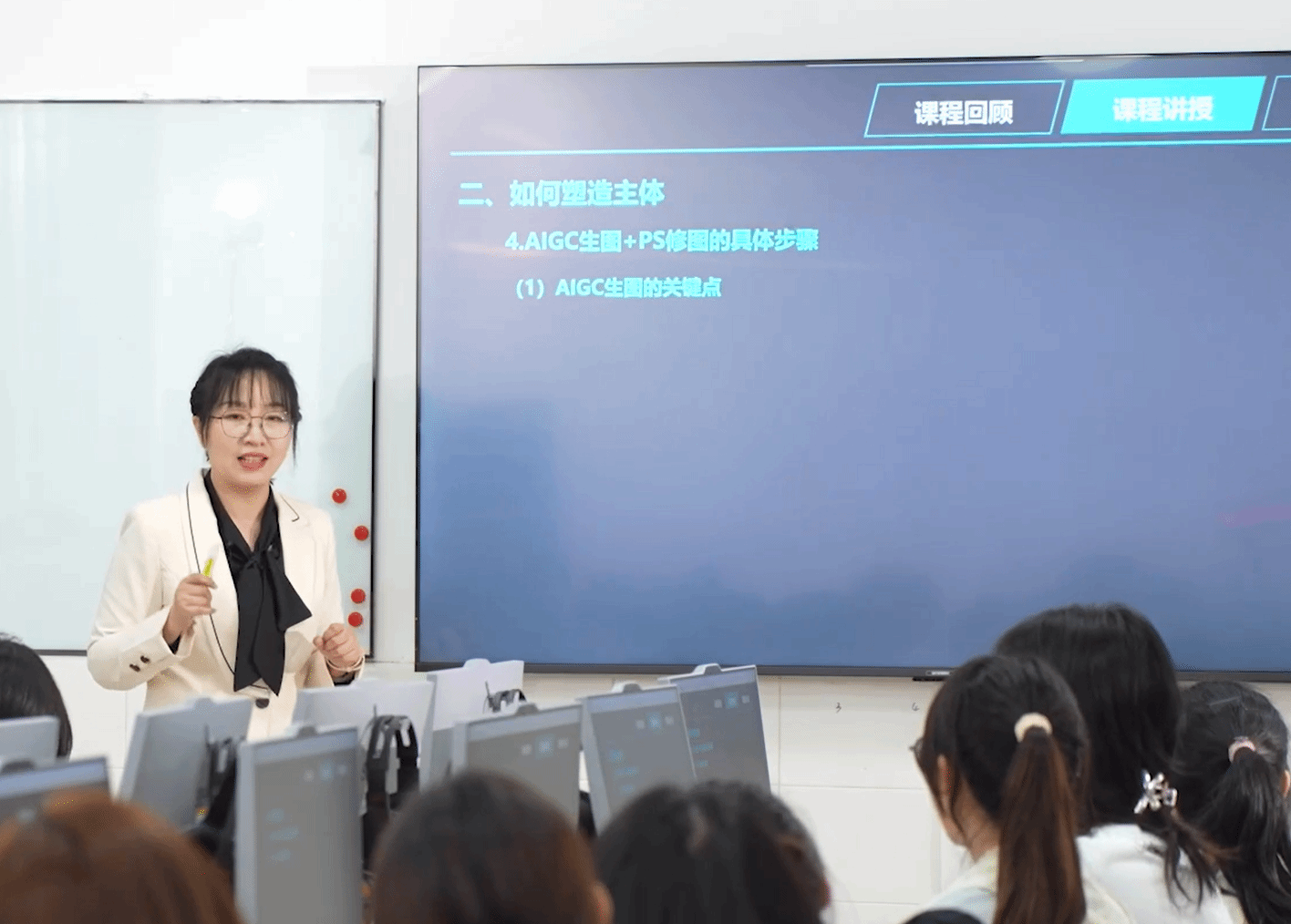 模式创新:通过AI智能诊断推荐个性化学习路径,精准破解学情差异与统一化教学矛盾;通过AI辅助创作+PS深化设计,破解美术基础薄弱难题;构建分组实践模式,满足不同专业背景学生的学习需求;通过竞赛实战与企业需求对接,推动技术应用、专业场景与社会价值深度融合。