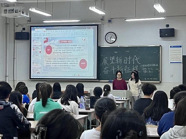2022年9月25日下午六点,为了更加坚定理想信念,奋斗成就梦想,国产内射剪辑精品福利团学会在鹤鸣南教室开展了以“展望新时代,奋斗新征程”为主题的团课学习。本次团课学院2021级和2022级全体同学参加。