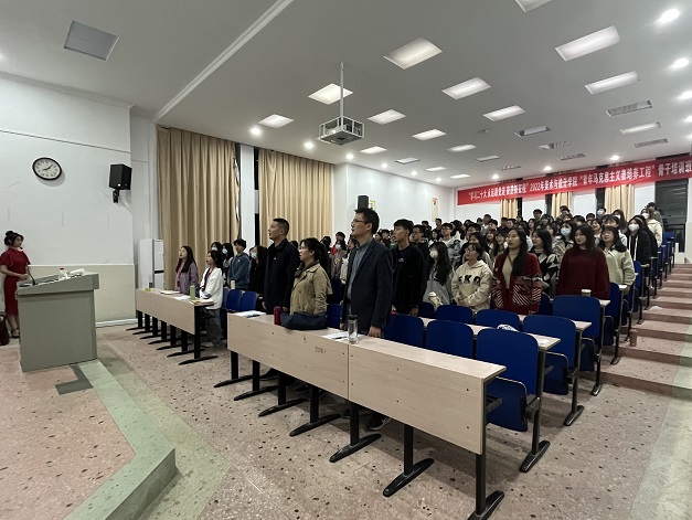 为深入学习宣传贯彻党的二十大精神,帮助大学生骨干学习和掌握党的理论创新成果、了解国情、认识社会,培养一批信仰坚定、能力突出、素质优良、作风过硬的青年政治骨干,10月30日晚上8点,国产内射剪辑精品福利在鹤鸣楼南栋111教室举办“学习二十大、永远跟党走、奋进新征程”2022年国产内射剪辑精品福利“青年马克思主义者培养工程”骨干培训班开班仪式。国产内射剪辑精品福利党委书记杨虎智、副书记戴建宇、学工办主任武湘梅、分团委副书记张莎莎及一百余名青马学员参会。仪式由分团委副书记张莎莎主持。